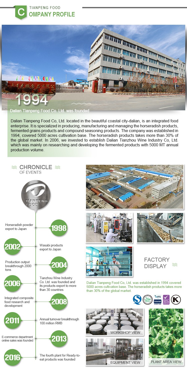 我们不但有工厂,,,,,,, 尚有占地5000英亩的莳植基地。。。。。。辣根产品占有了全球市场30%以上,,,,,,,由于我们具有竞争力的价钱。。。。。。